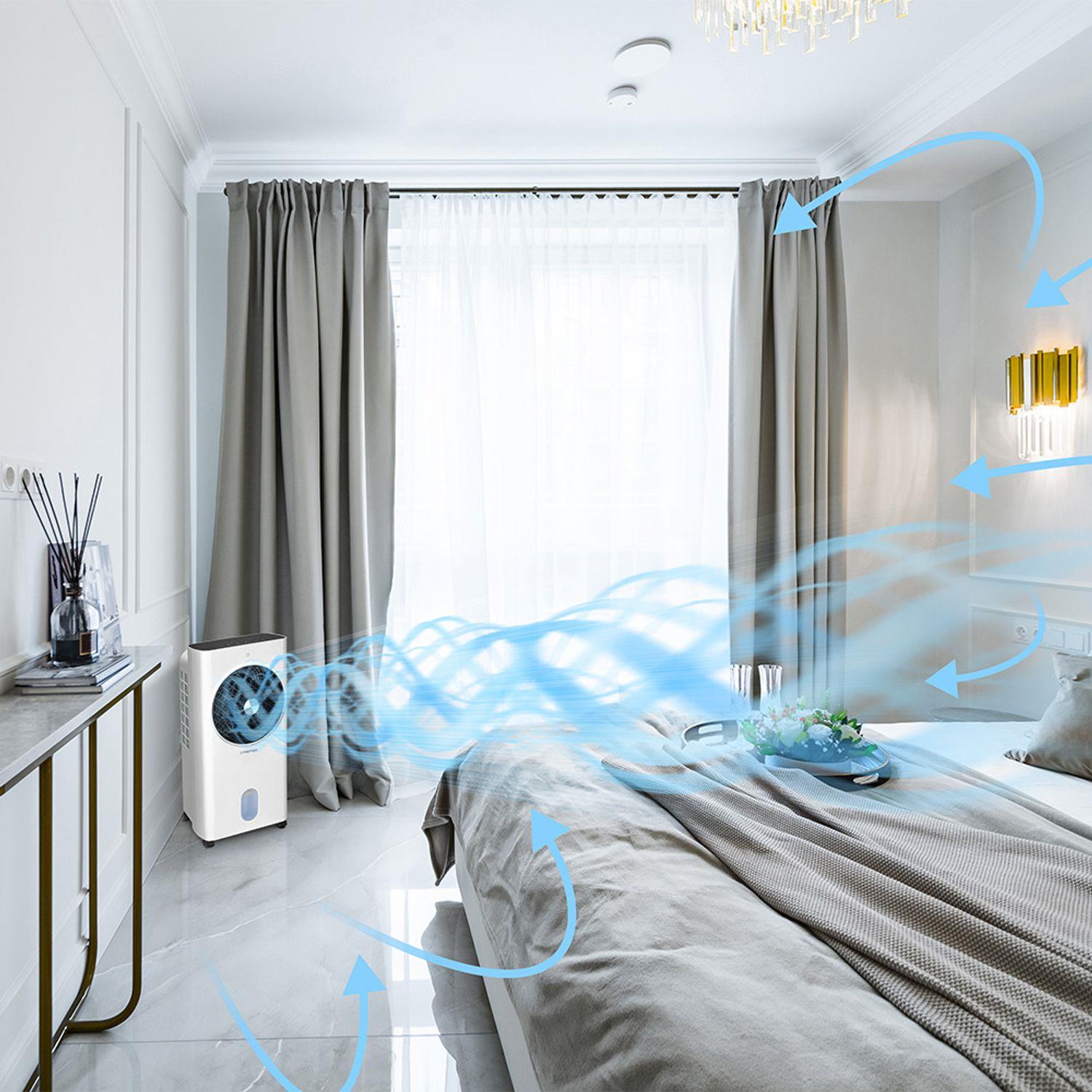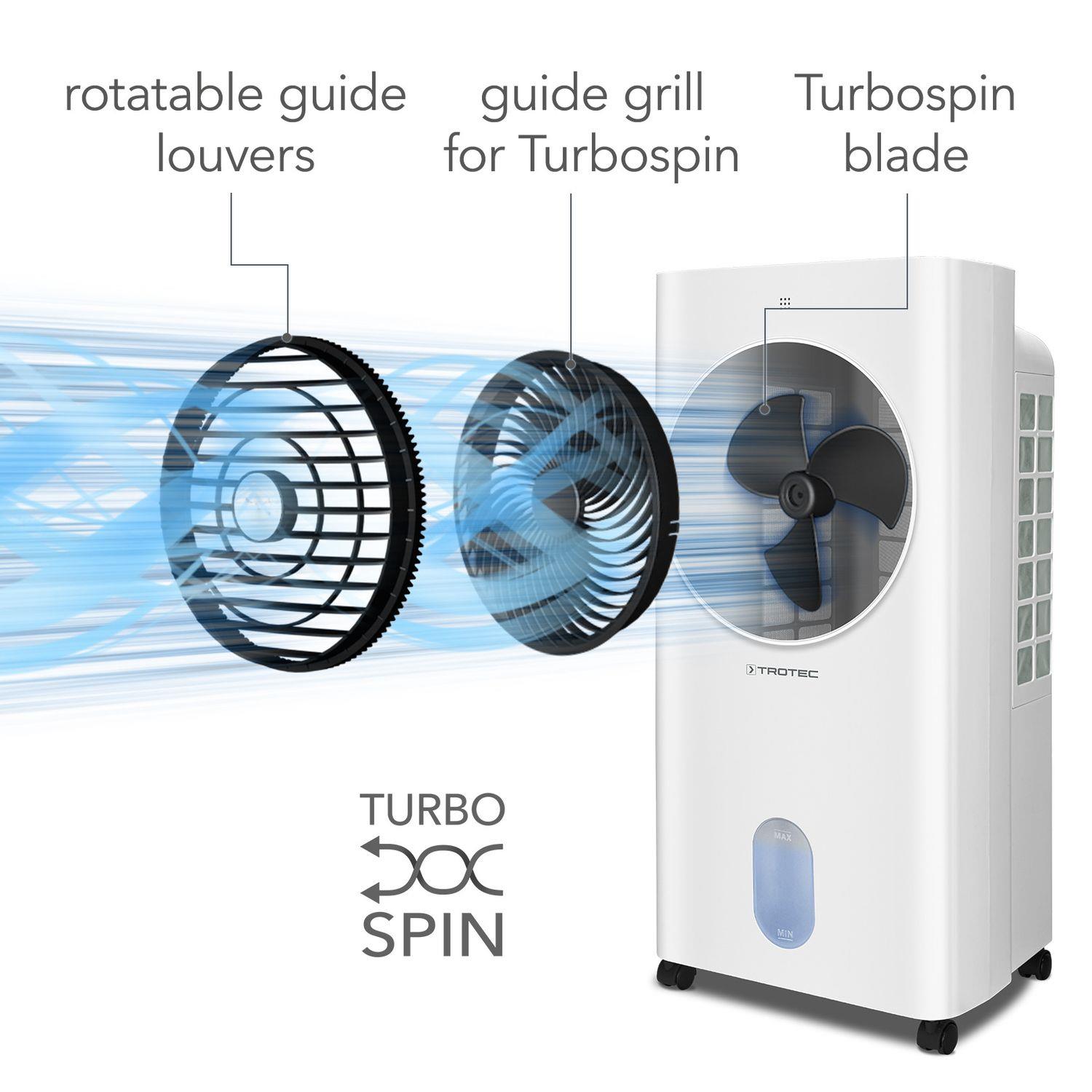 Gelişmiş Turbospin fan teknolojisi sayesinde güçlü hava akışı oluşturarak sıcak havayı hızlı şekilde serinletir. 10 metreye kadar hava üfleme mesafesi ve yüksek hava debisi ile evler, ofisler, kış bahçeleri ve ticari alanlarda etkili bir serinlik sağlar.