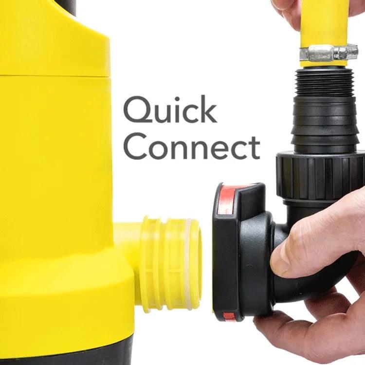 Yenilikçi 360° Quick-Connect adaptör sayesinde hortum ve borular kolayca takılır. Bahçe sulama, kuyu drenajı ve yağmur suyu tahliyesi uygulamaları için mükemmel çözümdür.